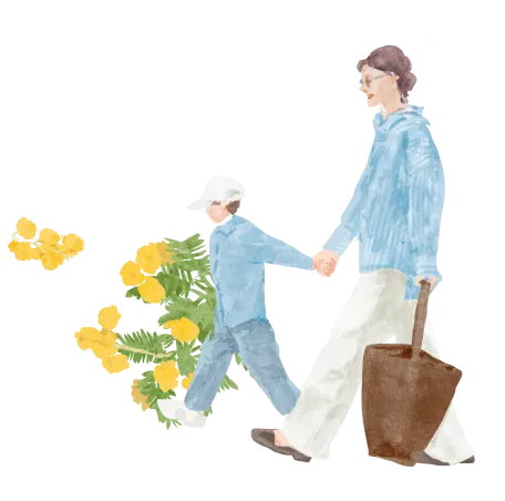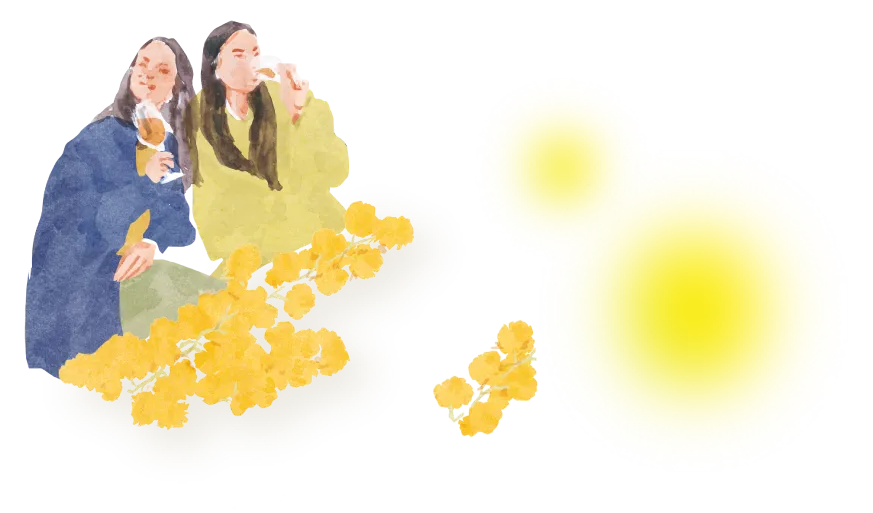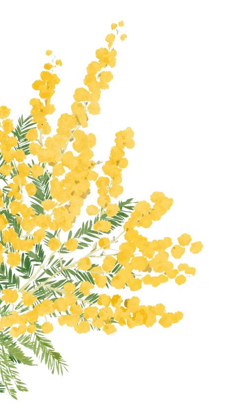 イエローの可憐な花々が咲くミモザのリースをベースに、それぞれがそれぞれらしく輝く女性たちを散りばめたイラストを制作しました。大切な人に、そして自分に。愛と感謝の気持ちを込めて、ミモザフェスタを一緒に楽しめたら嬉しいです。