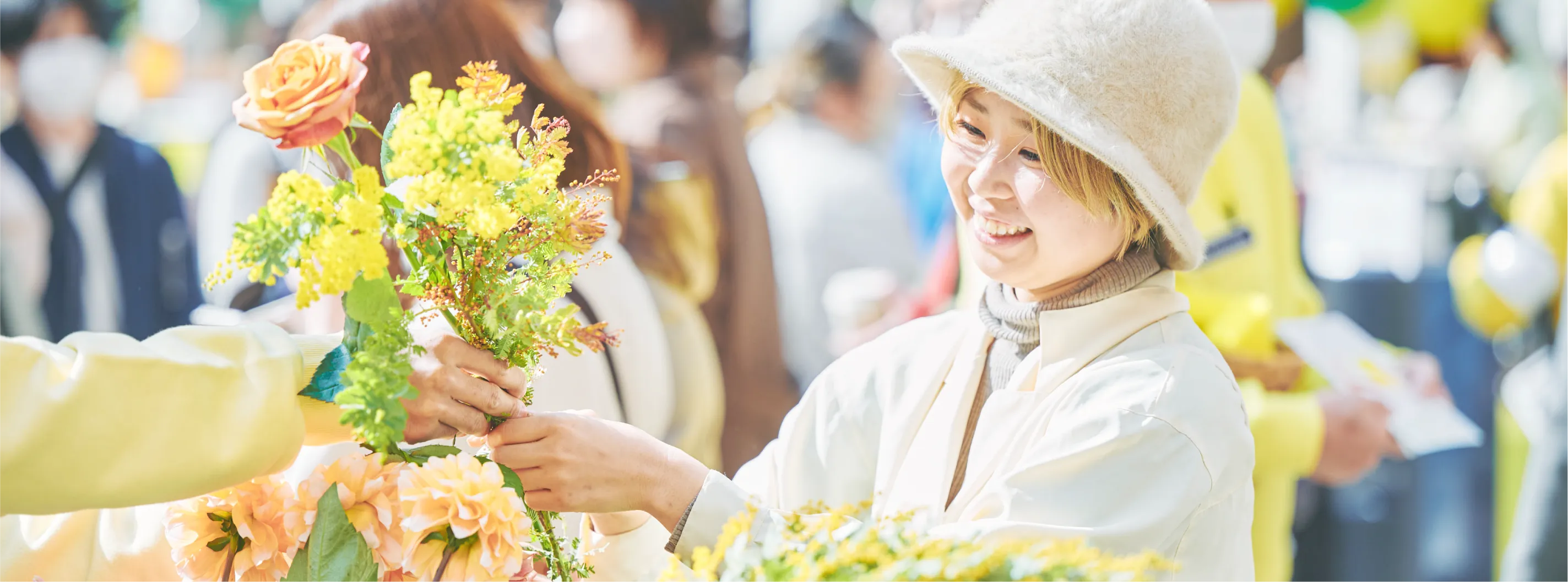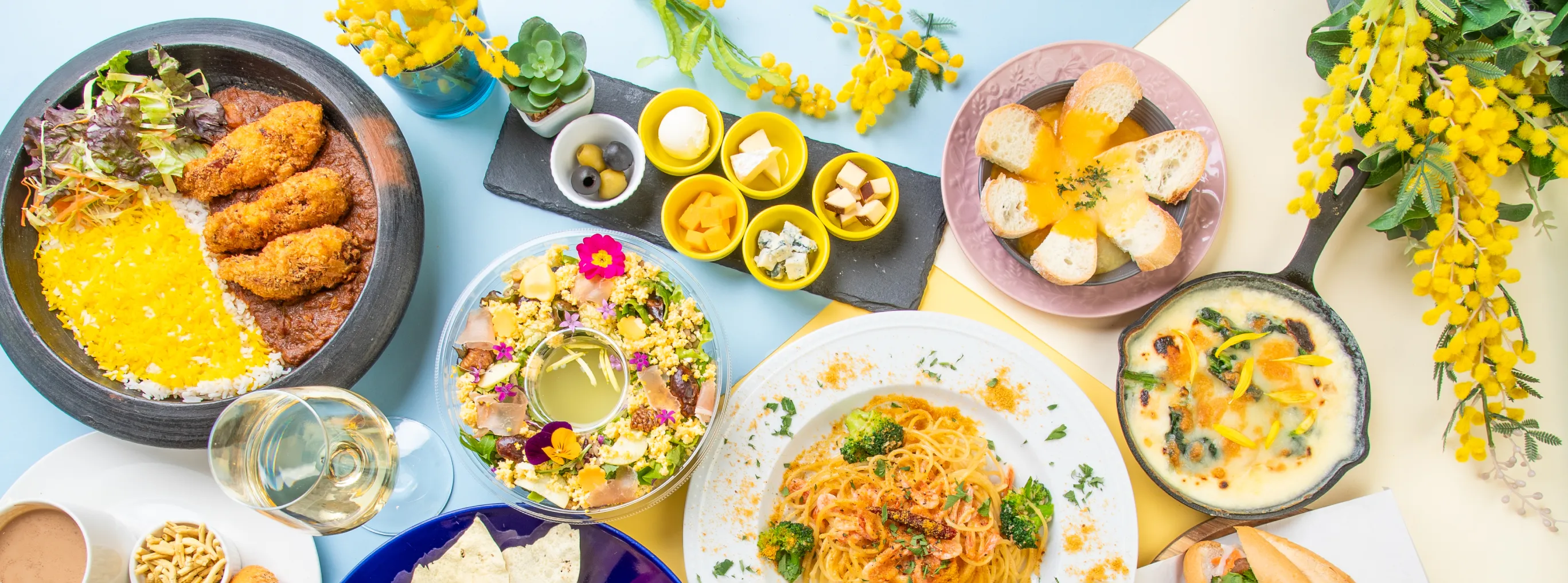 鮮やかなミモザイエローに染まります。