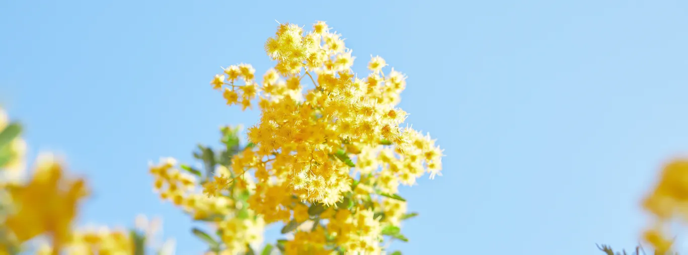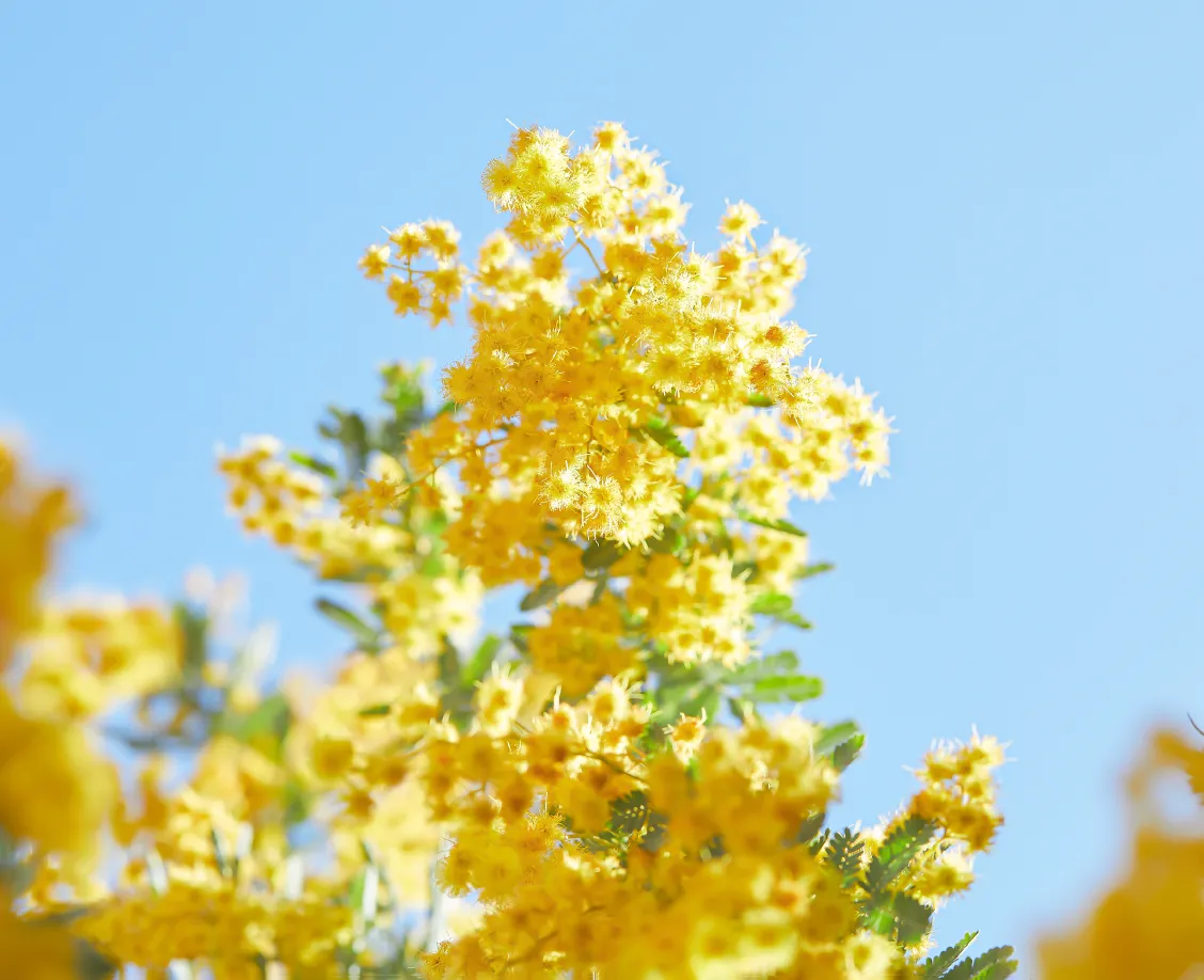 美しく黄色いミモザの花を、
