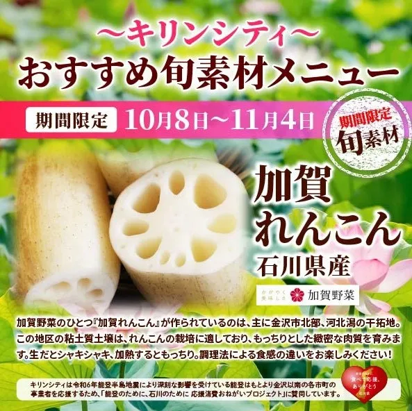 ◎キリンシティは令和6年能登半島地震により深刻な影響を受けている能登はもとより金沢以南の各市町の事業者を応援するため、「能登のために、石川のために 応援消費おねがいプロジェクト」に賛同しています。