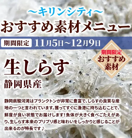 魚体が大きく食べごたえがあり、生しらす本来のプリプリ感と味わいをしっかりと感じることが出来るのが特長です♪